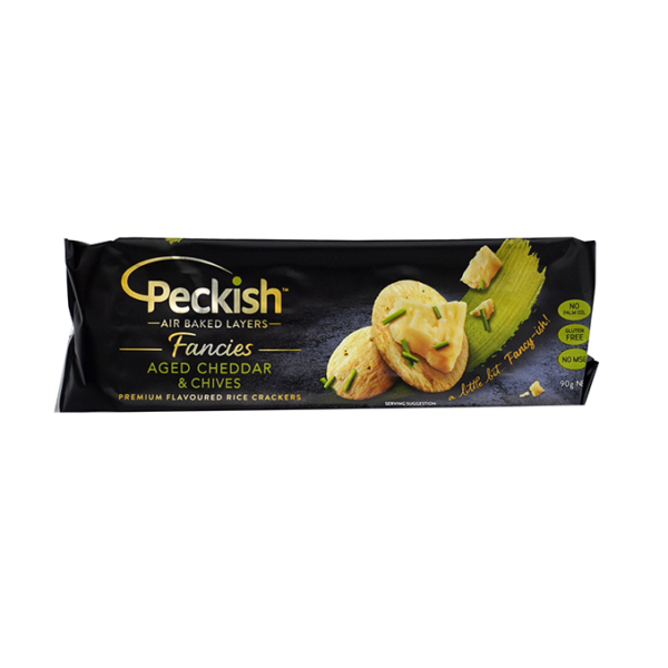 Home > Shop > Groceries > Peckish Aged Cheddar & Chives Rice Crackers 90g
